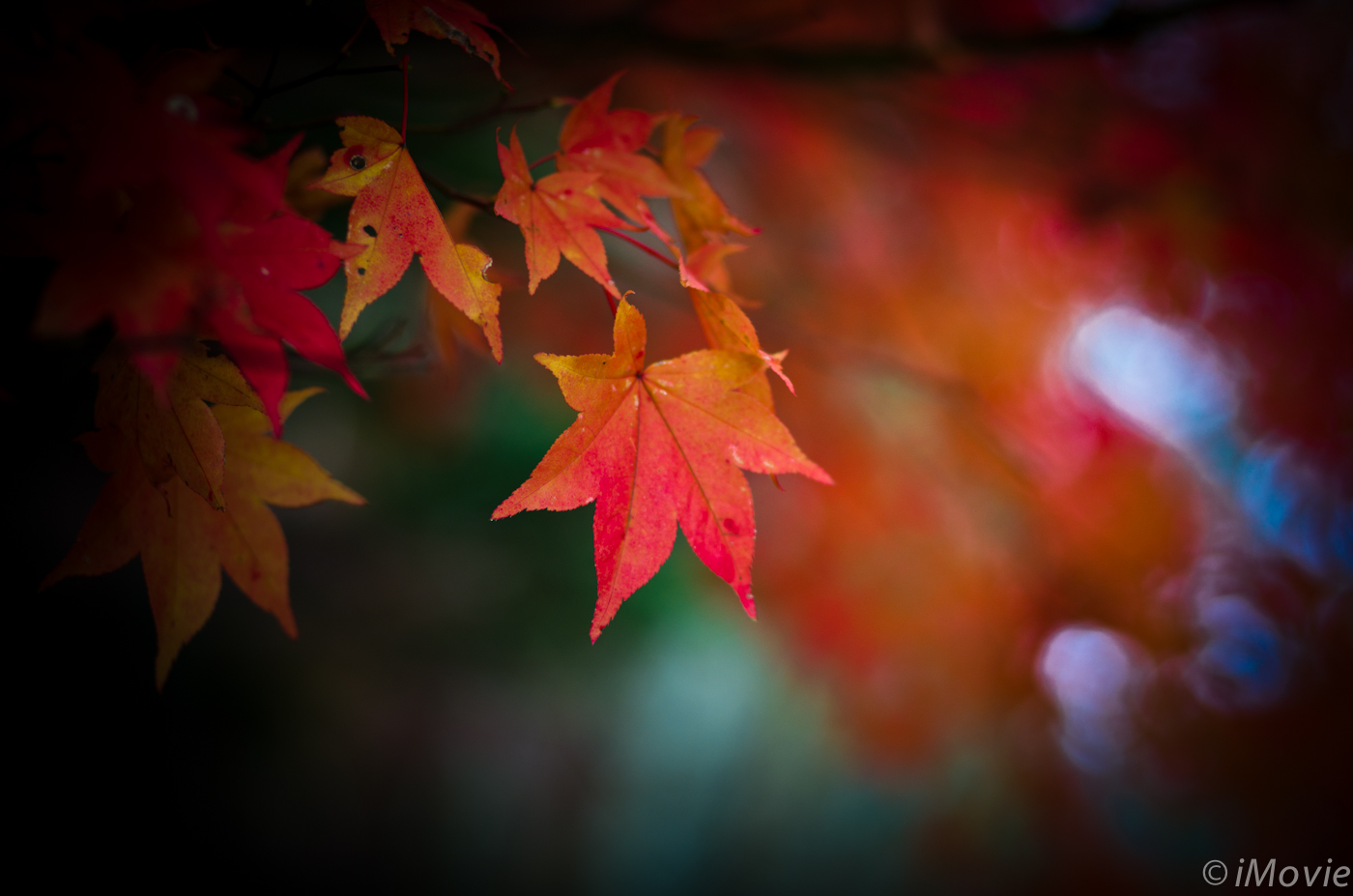 透過光で透けてきれいなモミジと木漏れ日の玉ぼけのコラボ♪ 2枚組みです ^^