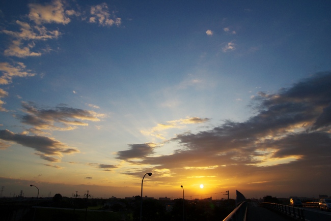 ようで、太陽が昇ってくる場所が、ちょうど雲が切れて、シャッター