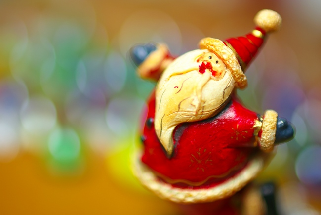 優しそうなサンタのおじさんと、背景の柔らかいボケ・・・