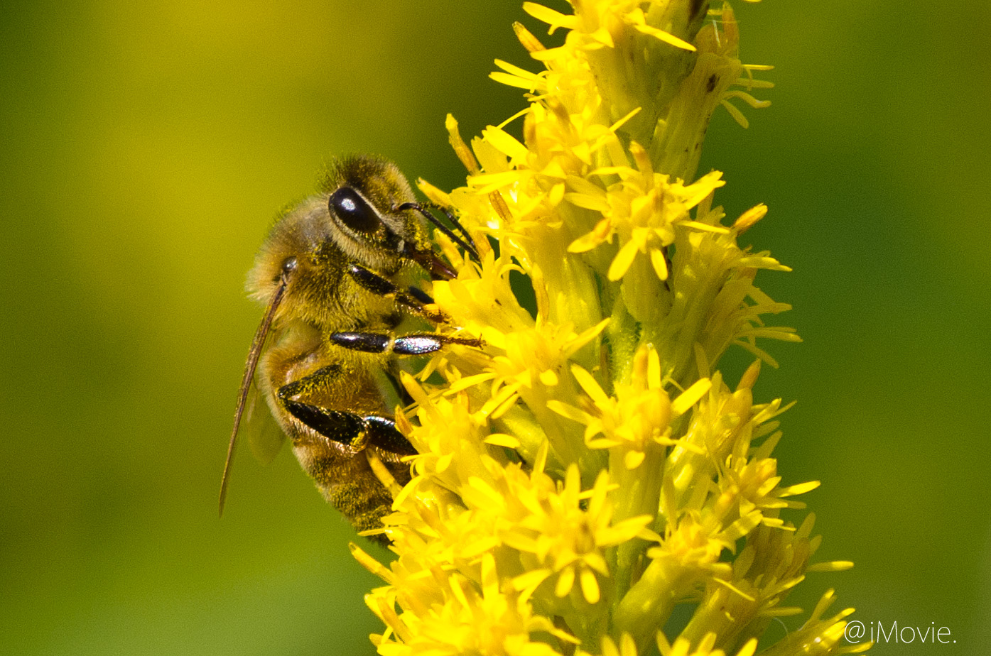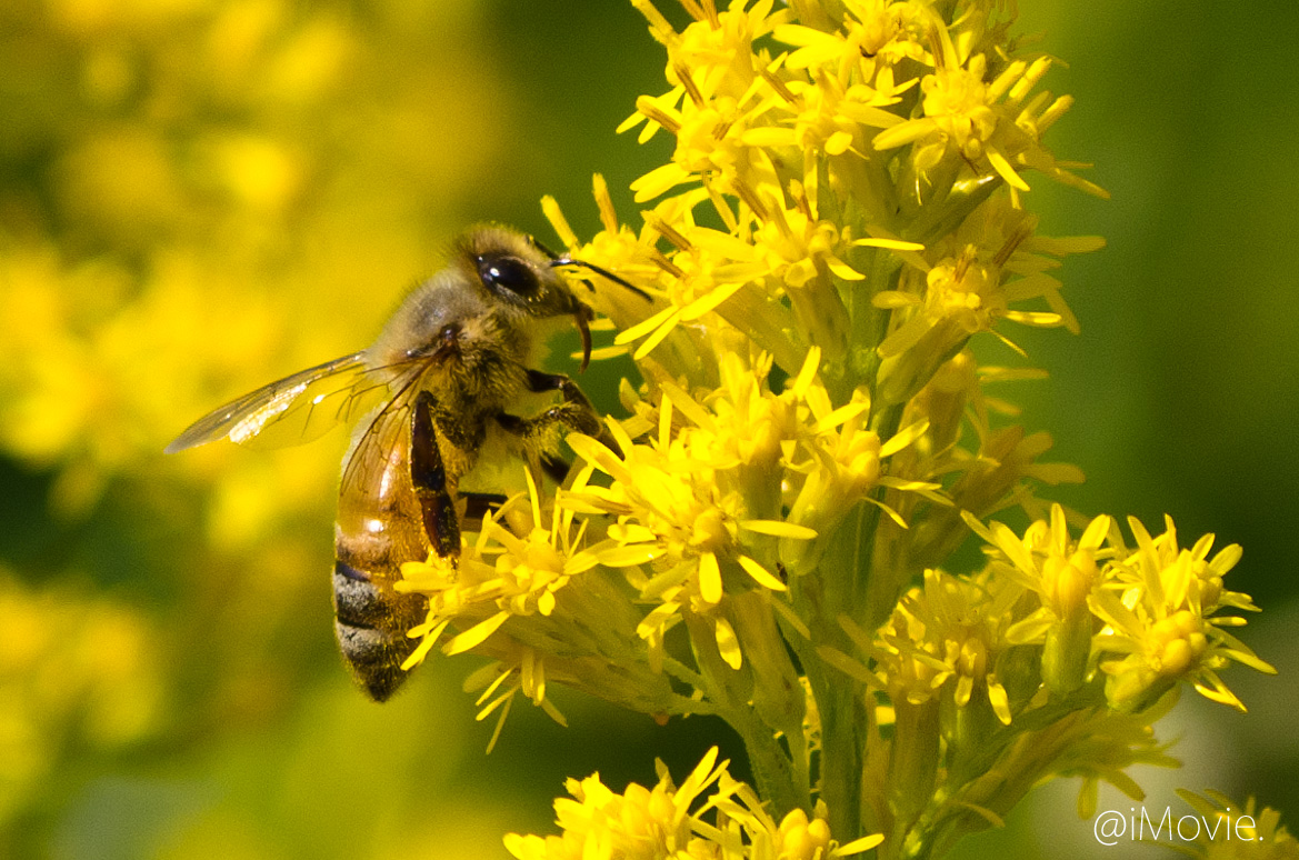 セイタカアワダチソウでお食事中のミツバチ君です ^^