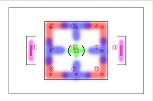いろいろな記事で、中央以外の配置は、上下左右の十字と記載されています。