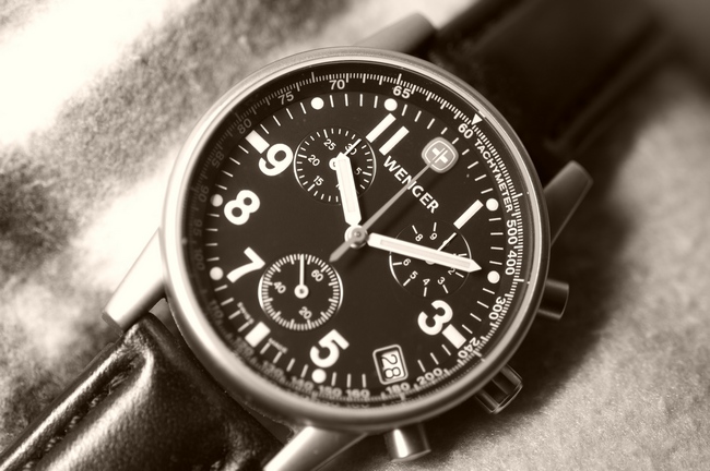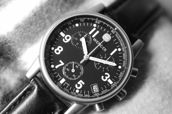 WENGER製「クロノグラフコマンド70725」で、劇中ではベルトをミモザ製のMN-1という別売りのナイロンベルト