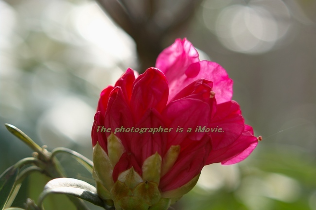 朝の陽光に輝くシャクナゲの花を逆光寄りで撮ります。