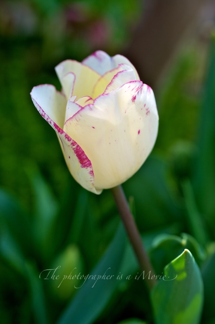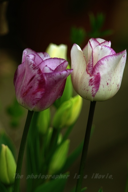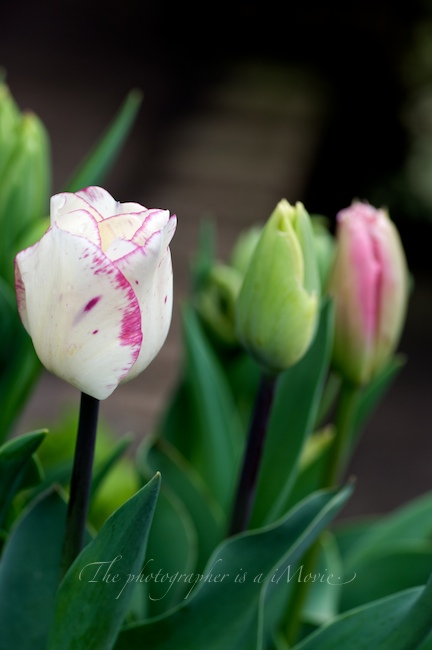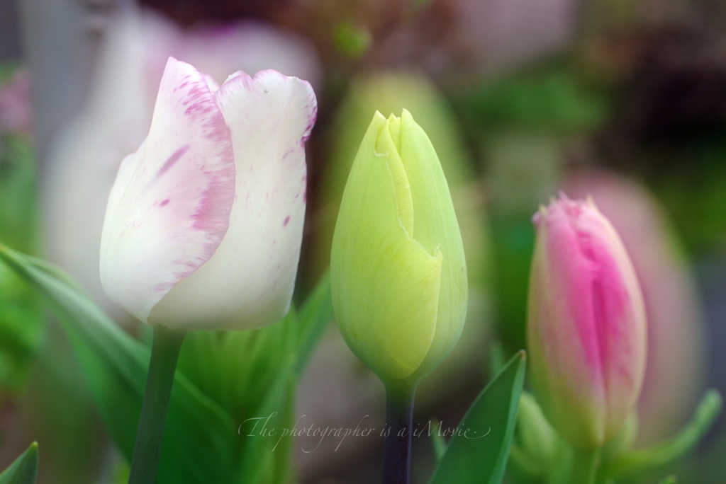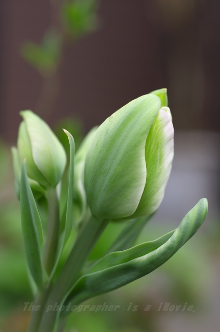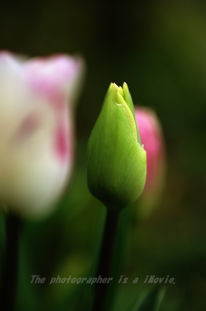FA43の開放域の柔らかい描写で、チューリップの蕾を撮ります。