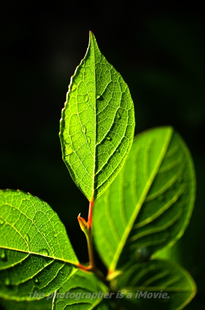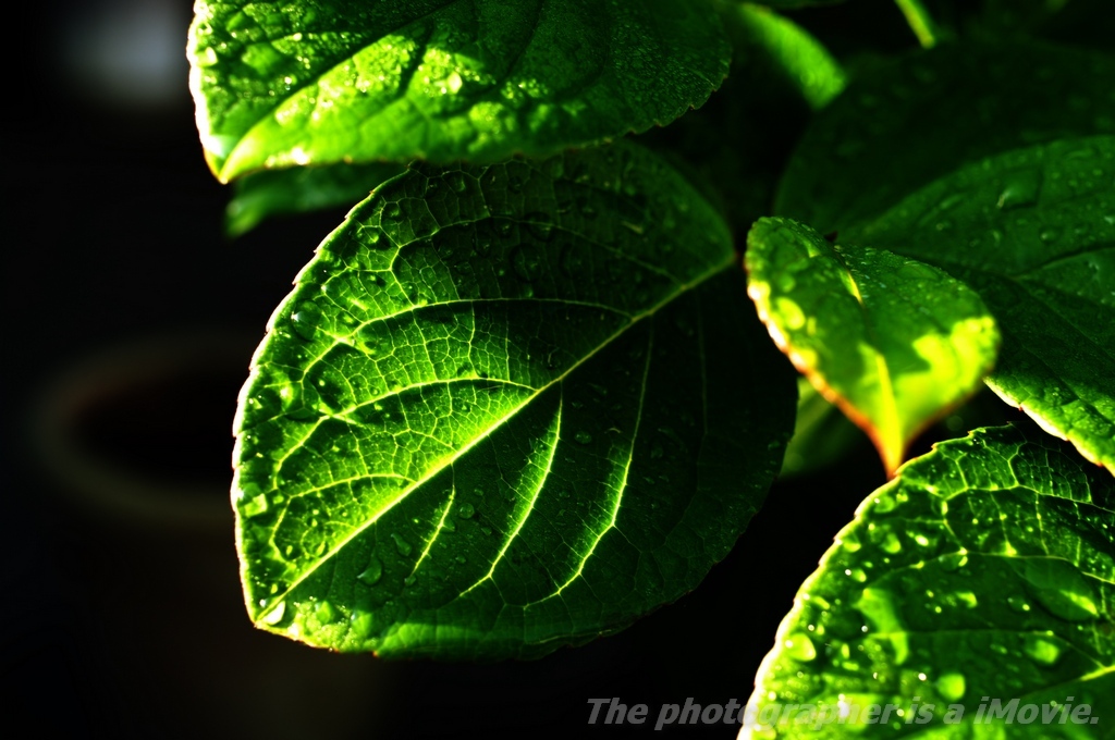 雨上がりの朝、陽光に透けたナツツバキの葉を撮影しました。