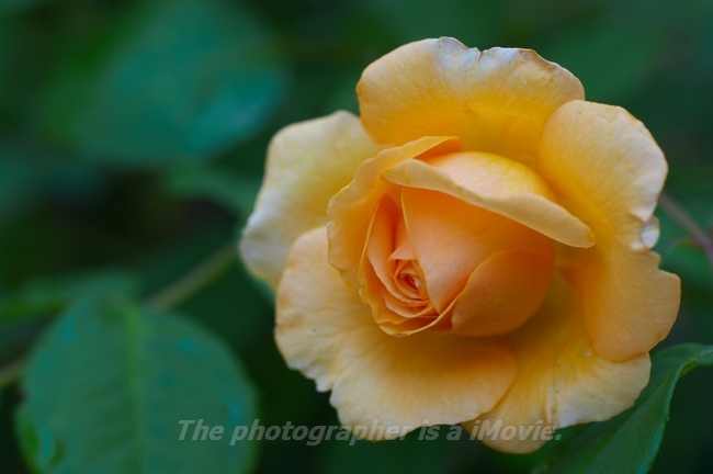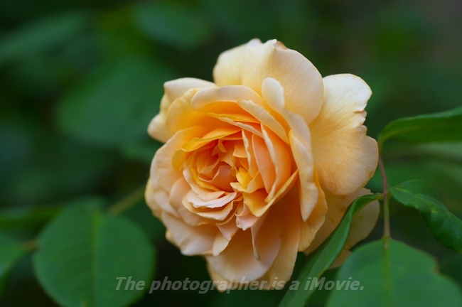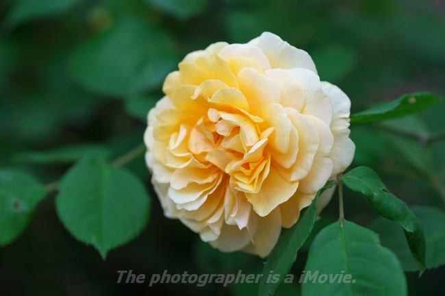 絞り開放で、背景のナツツバキの葉をぼかして奥行き感を出しています。