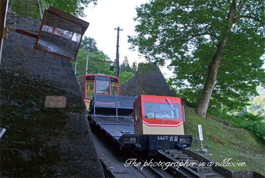 立山ケーブルカーです。最大斜度29.14度、高低差487mの美女平まで運行しています。