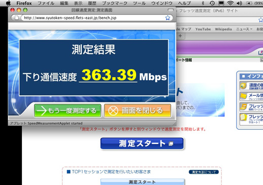 有り得ない数値です。何度測っても、360Mbpsオーバー