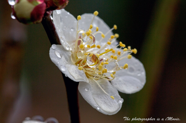 <梅の花と水滴>
