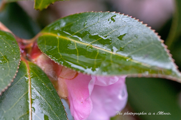 <ツバキの花と水滴>