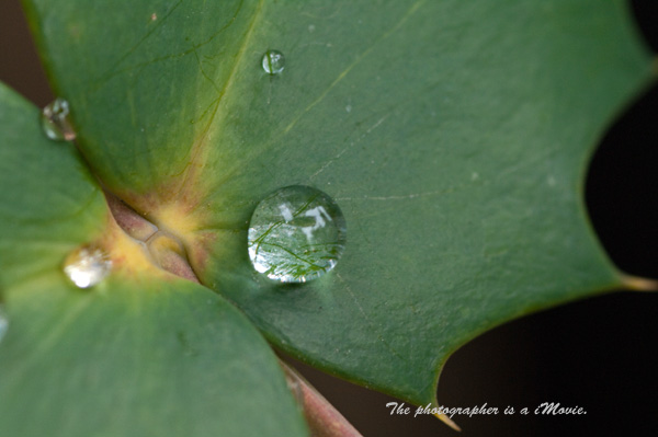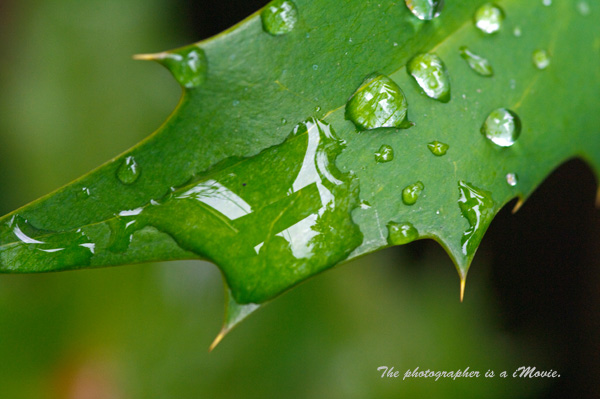 <ヒイラギナンテンの葉と水滴>