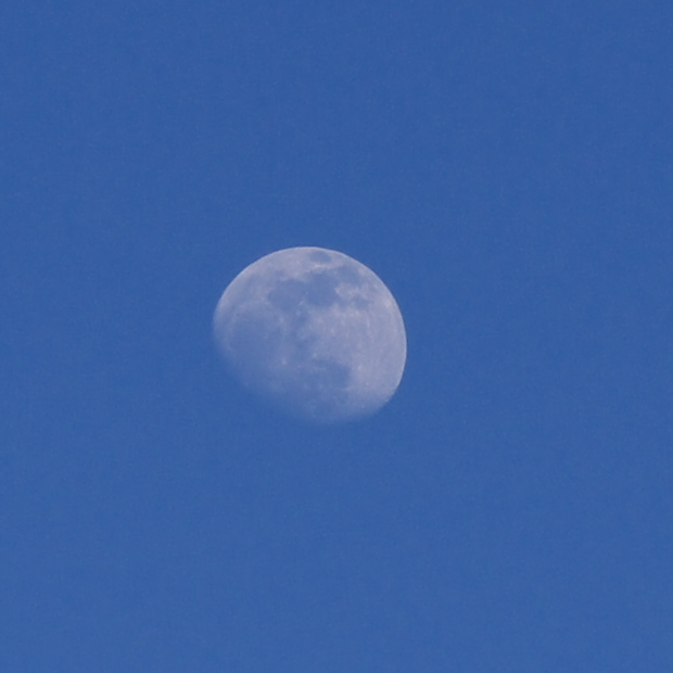 昨日、快晴の空にポッカリ浮かんでいた真昼の月です。