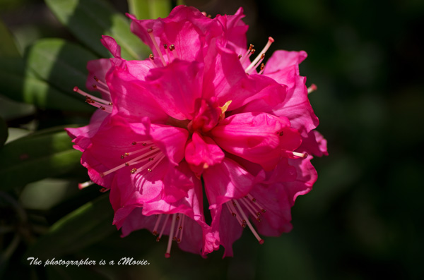 シャクナゲ 2011-04-03 に imovie が投稿 — 2件のコメント ↓ シャクナゲの花、放射状に咲く花なので、真上の位置から撮ると絵になるかな? 早速、物置から脚立を出してきて、撮って見ました。 シャクナゲの下は、雑草の絨毯です。淡くぼかしたいので絞り開放にセット 真上から撮ると、シャクナゲの花の特徴が出て、お気に入りの1枚になりました。 PENTAX K-5 D FA MACRO 100mmF2.8 WR [ F2.8 1/1600 ISO100 -0.7EV]