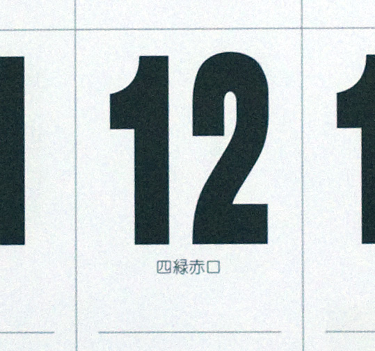 写真のようなカレンダーを用意して、AFフレームの中央に赤文字、黒文字がくるように、