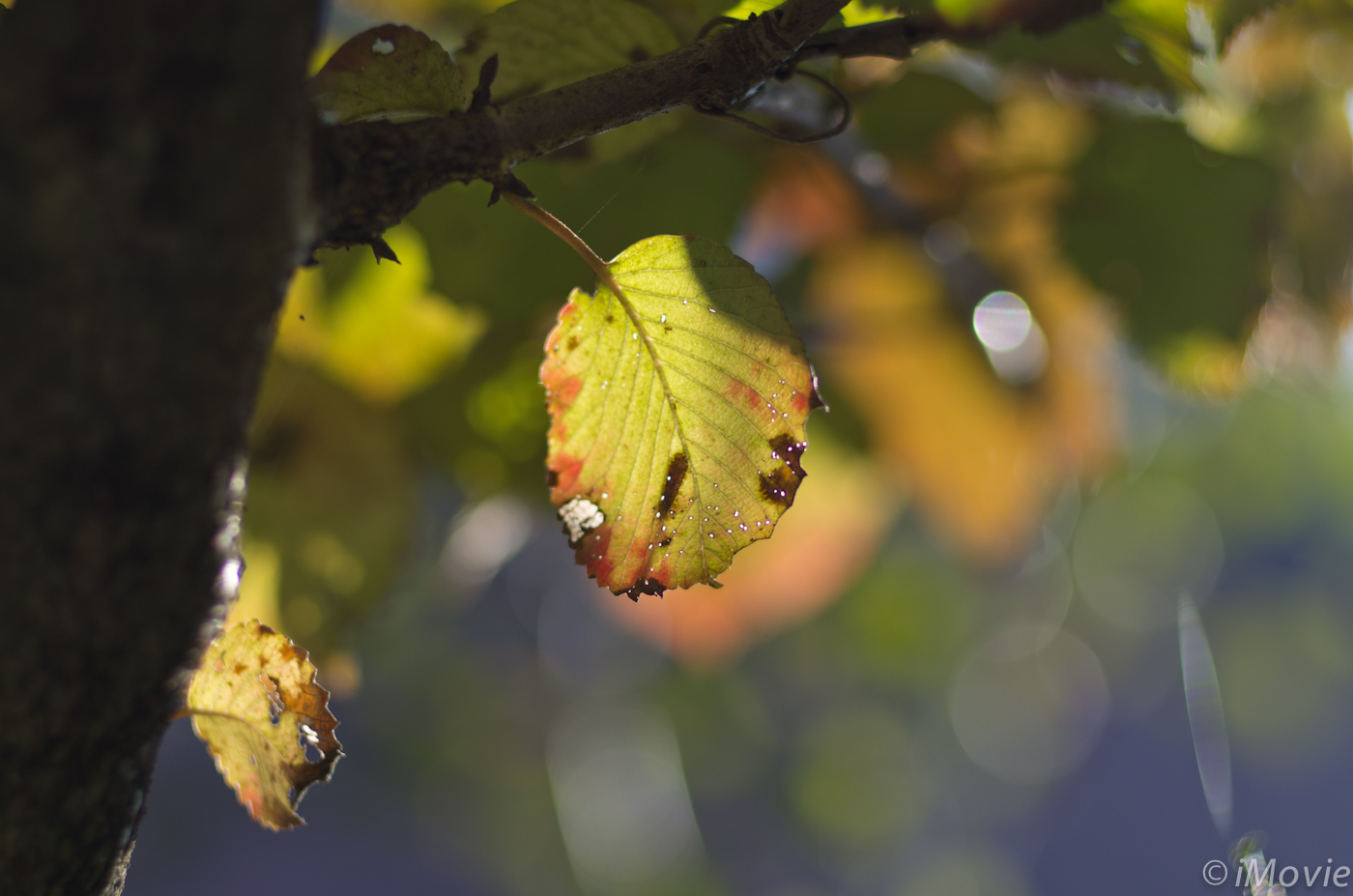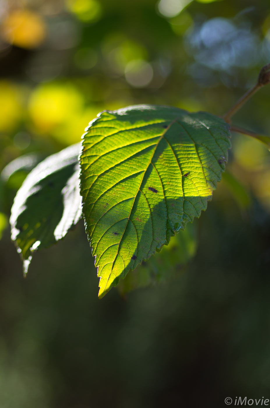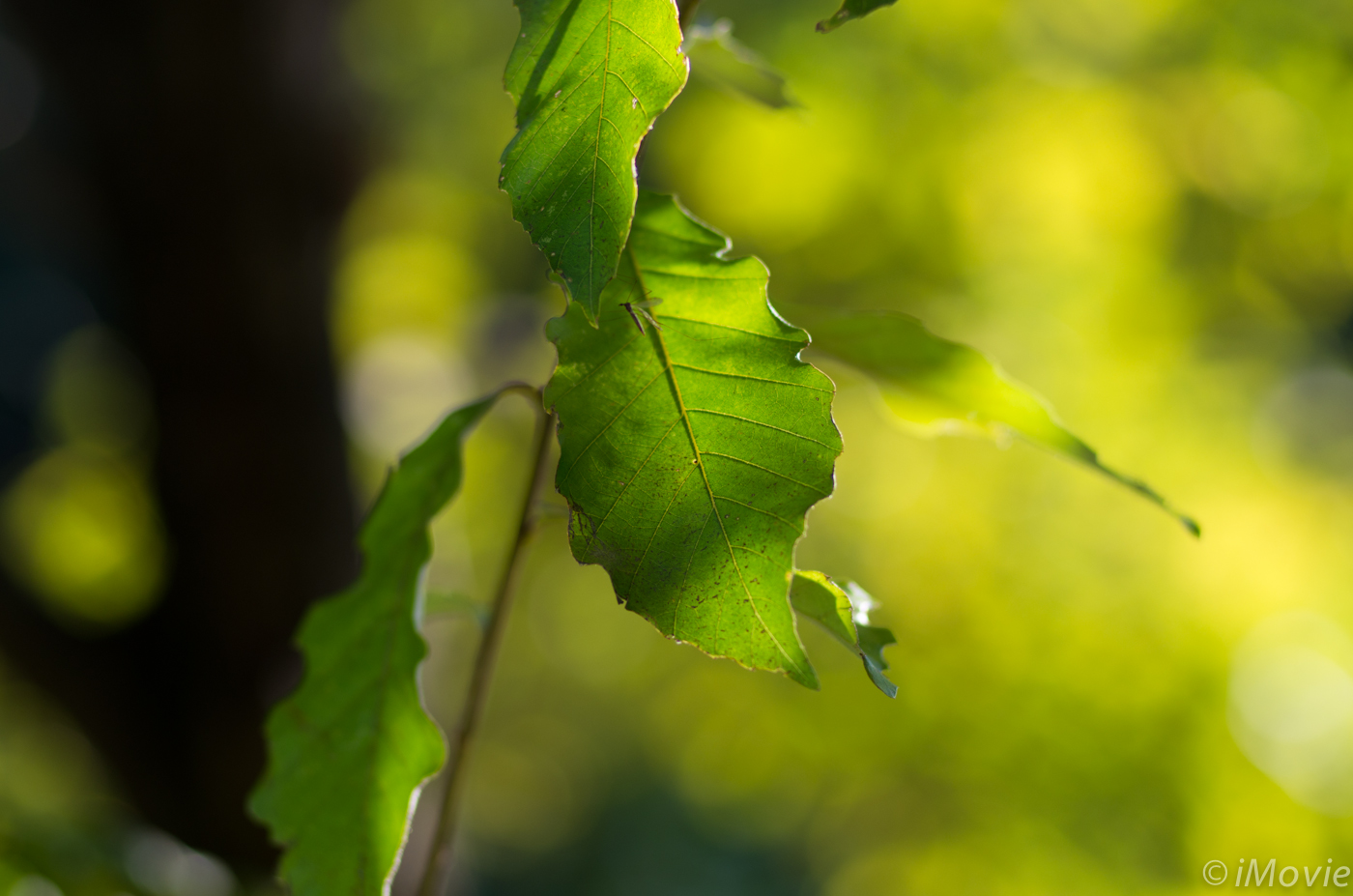 クヌギの葉にも、同じく陽の光が降り注いでいます。