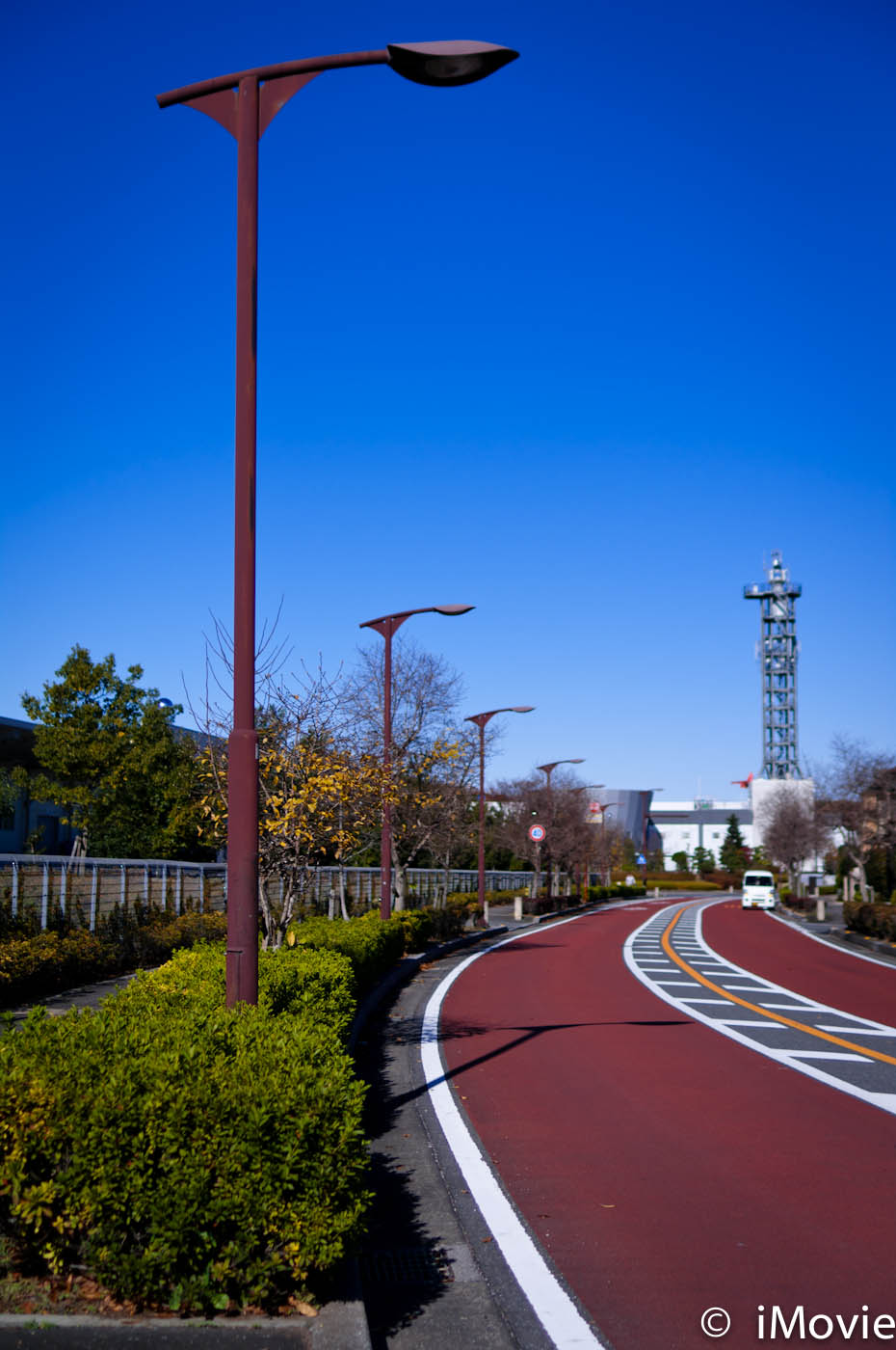 道がカーブしていて、街路灯の連なりが絵になります ^^