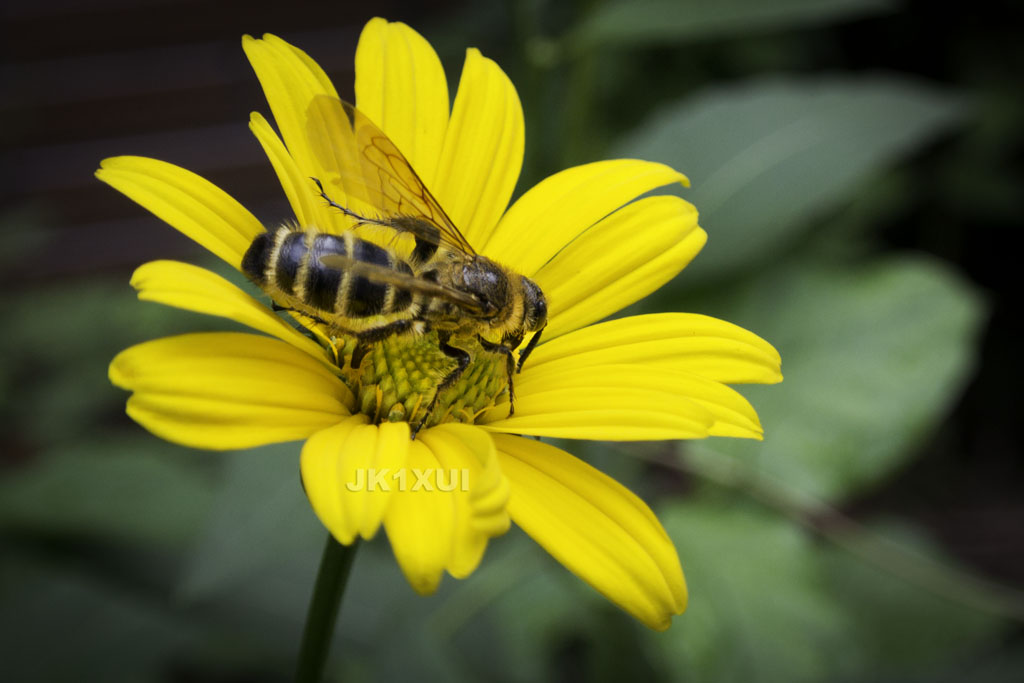 ハチが来ました 絞り開放F4.3ですが、解像してます(トリミング)